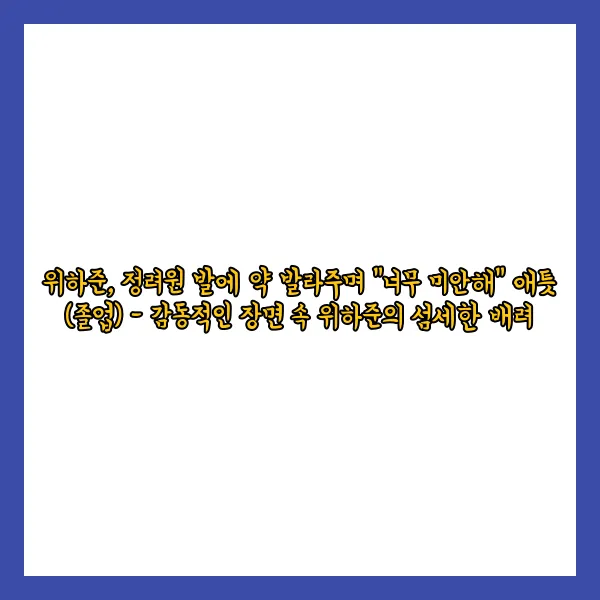 위하준이 정려원의 발에 약을 발라주며 "너무 미안해"라는 마음을 전했다. 이 순간은 '졸업'의 감동적인 장면 중 하나로, 위하준의 섬세한 배려와 정려원에 대한 애틋한 마음이 독자들을 감동시켰다.