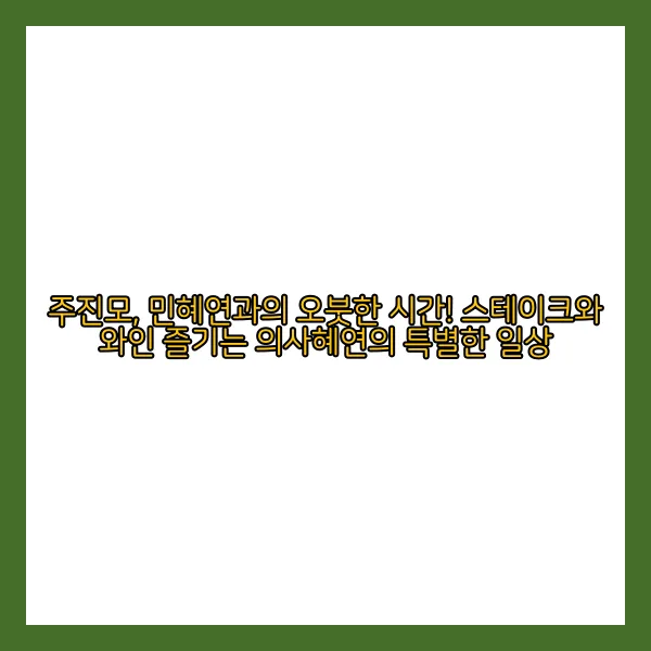 의사혜연의 특별한 일상을 엿볼 수 있는 유튜브 영상이 공개되었습니다. 민혜연은 남편 주진모가 준비한 스테이크를 소개하며, "맛있게 익었다. 컬러가 좋다. 딱이다"라며 주진모의 요리 솜씨를 칭찬했습니다. 함께 와인을 즐기며 오붓한 시간을 보내는 모습은 마치 로맨틱한 영화 속 주인공들처럼 보기 좋았