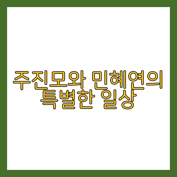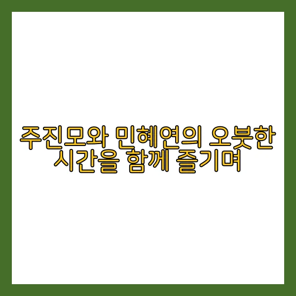 민혜연과 주진모의 오붓한 시간은 정말로 특별하고 의미 있는 것이라는 생각이 들었습니다. 함께하는 모든 순간이 행복하고 소중한 것으로 기억될 것이며, 이들의 특별한 일상을 함께 응원하고 축하하는 마음을 담아 이야기를 마무리하겠습니다. 함께한 시간이 더욱 소중하고 의미 있는 것으로 기억될 것이며, 이들의 사랑과 행복이 더욱 번창하기를 진심으로 기원합니다. 함께한 시간이 더욱 소중하고 의미 있는 것으로 기억될 것이며, 이들의 특별한 일상을 함께 응원하고 축하하는 마음을 담아 이야기를 마무리하겠습니다. ^^