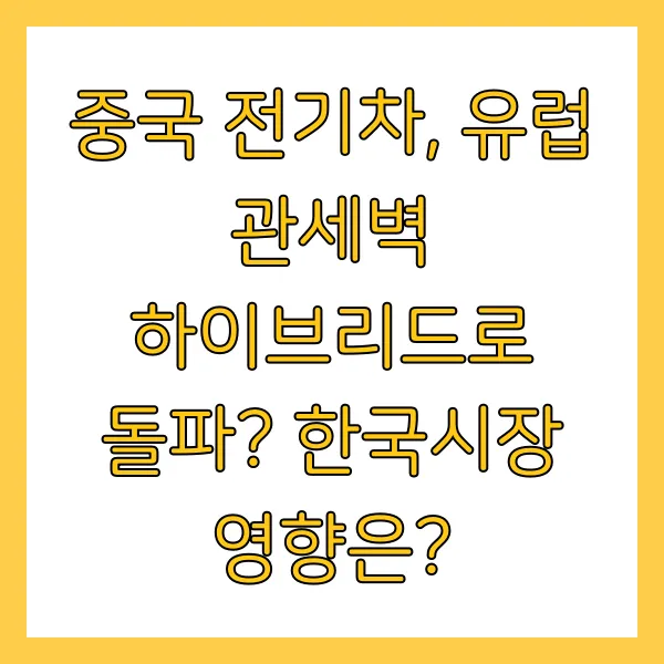 중국 전기차 업계가 유럽연합(EU)의 고율 관세 장벽에 맞서 하이브리드 차량을 새로운 돌파구로 삼고 있습니다. 이 전략 변화는 한국 자동차 시장에도 상당한 영향을 미칠 것으로 예상되는데요, 과연 중국의 하이브리드 전략은 무엇이며, 한국 시장에는 어떤 파장을 불러올까요? 중국 전기차의 미래와 한국 자동차 산업의 대응 전략을 심층 분석해 보겠습니다. 관련 키워드: 중국 전기차, 하이브리드 자동차, 유럽 관세, 한국 자동차 시장, BYD, 르노코리아, KG모빌리티