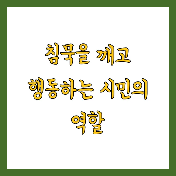 우리 사회 구성원 모두는 민주주의를 지키는 감시자이자 참여자입니다. 권력의 남용을 감시하고 부정의에 맞서 싸워야 합니다. SNS, 온라인 커뮤니티, 거리의 시위 등 다양한 방법을 통해 우리의 목소리를 내고 연대해야 합니다. 침묵은 동조이며, 방관은 또 다른 폭력이라는 사실을 기억해야 합니다. 더 이상 침묵해서는 안 됩니다! 우리의 목소리가 모여 거대한 파도를 만들고, 세상을 바꿀 수 있다는 믿음을 가져야 합니다.